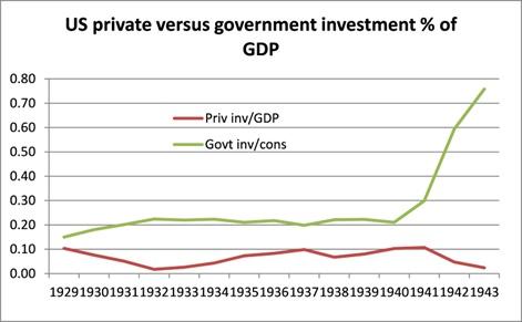 Laissons Keynes résumer la situation : « Il est, semble-t-il, politiquement impossible pour une démocratie capitaliste d’organiser les dépenses à l’échelle nécessaire pour faire les grandes expériences qui prouveraient mon point de vue – sauf dans des conditions de guerre », extrait de The New Republic (cité par P. Renshaw, Journal of Contemporary History 1999 vol. 34 (3) p. 377 -364).