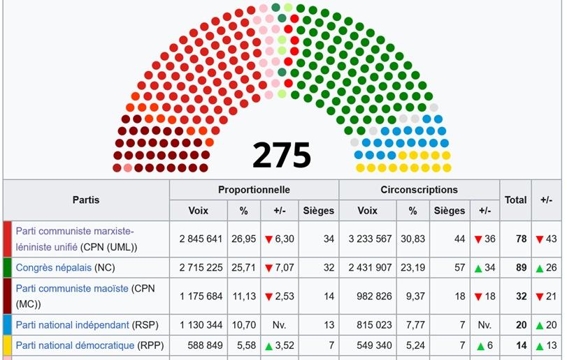 En novembre 2022, aux élections législatives, les différents partis ouvriers reculent mais totalisent encore 40 % des voix. Le parti traditionnel de la bourgeoisie, le NC, s’affaiblit. Une nouvelle formation bourgeoise fondée par un présentateur de télévision, Rabi Lamichhane, le RSP (Parti national indépendant), dépasse d’emblée 10 % des voix. Sur leur droite, le parti monarchiste et suprémaciste hindouiste Rastriya Prajatantra (Parti national démocratique, RPP) monte en puissance. Dopé par la domination en Inde de Modi et du BJP clérical et fascisant, le RPP mise sur la nostalgie de la monarchie et sur la glorification des castes pour en finir avec la démocratie parlementaire et le mouvement ouvrier.