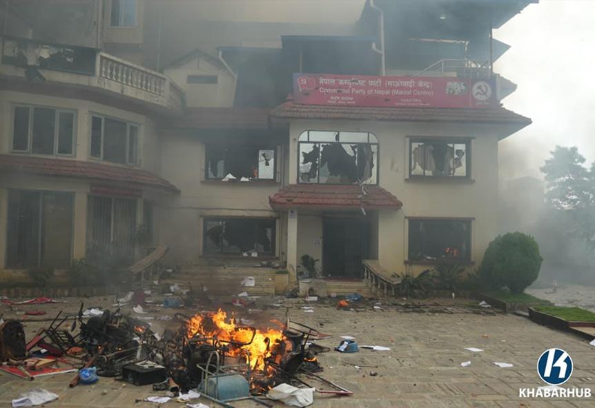 Le soir du 9 septembre, Oli rétablit les plateformes, promet une enquête et décrète un couvre-feu. Le lendemain matin, des émeutiers, parfois armés, submergent la police à Katmandou et dans les grandes villes, attaquent et pillent systématiquement les bâtiments officiels (dont le parlement), les sièges des principaux partis, les villas des politiciens accusés de corruption, les banques, les hôtels, les médias… Il semble que le lumpen profite des troubles pour détruire et voler, que les monarchistes et les fondamentalistes religieux saisissent l’occasion pour affaiblir le régime parlementaire et pour imposer de prendre des distances avec la Chine. Il y a 23 morts parmi les manifestants et 3 dans la police.