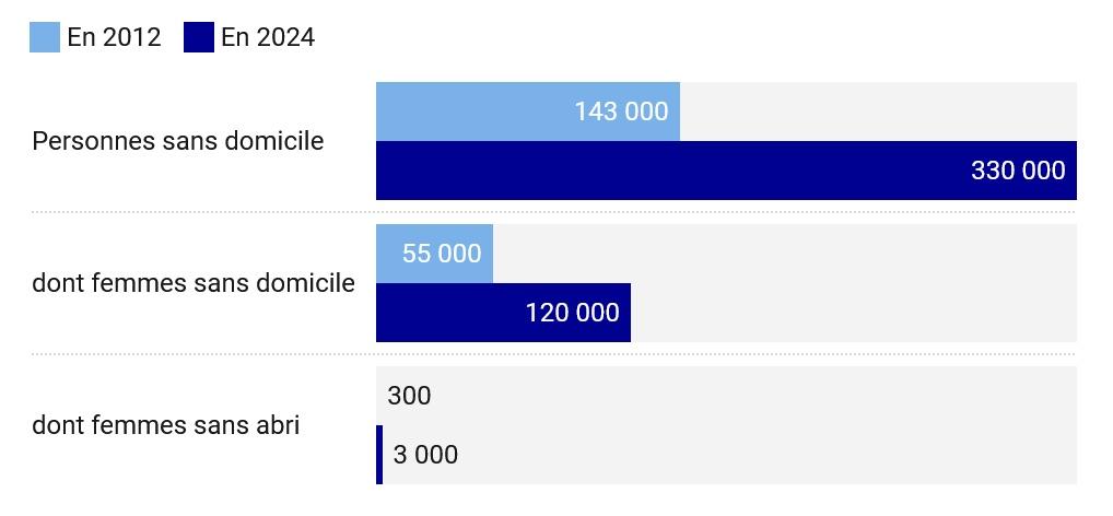 Chaque soir, environ 3 000 femmes et 3 000 enfants passent la nuit dans la rue. Parmi les demandes d’hébergement non pourvues, 60 % concernent des familles et parmi celles-ci 1 400 concernent des femmes seules avec enfant(s).